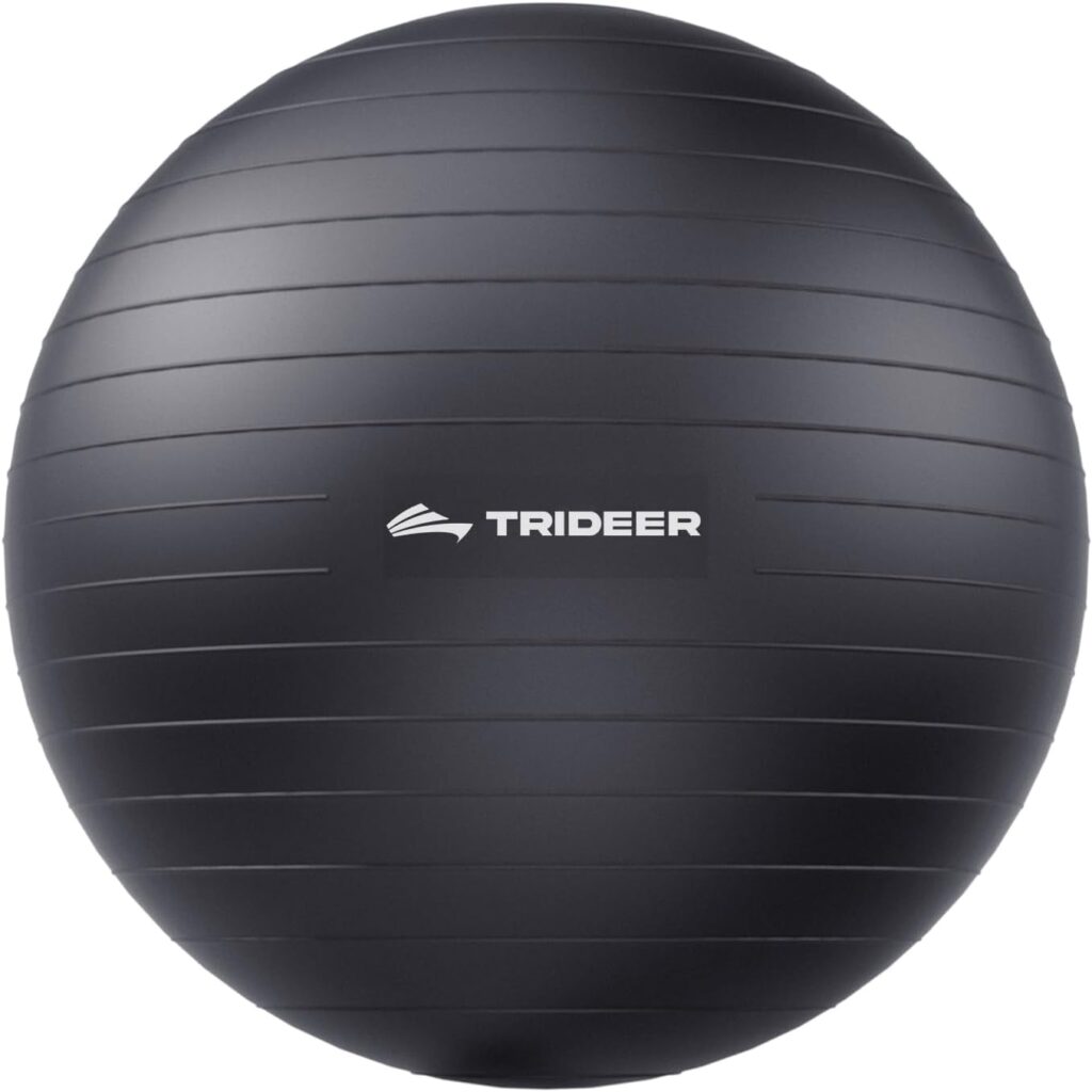 Description: The Trideer Exercise Ball features a burst-resistant design that can accommodate up to 2000 lbs. Available in various sizes, it ensures a perfect fit for everyone. It comes with an air pump and is great for yoga, pilates, and core training.